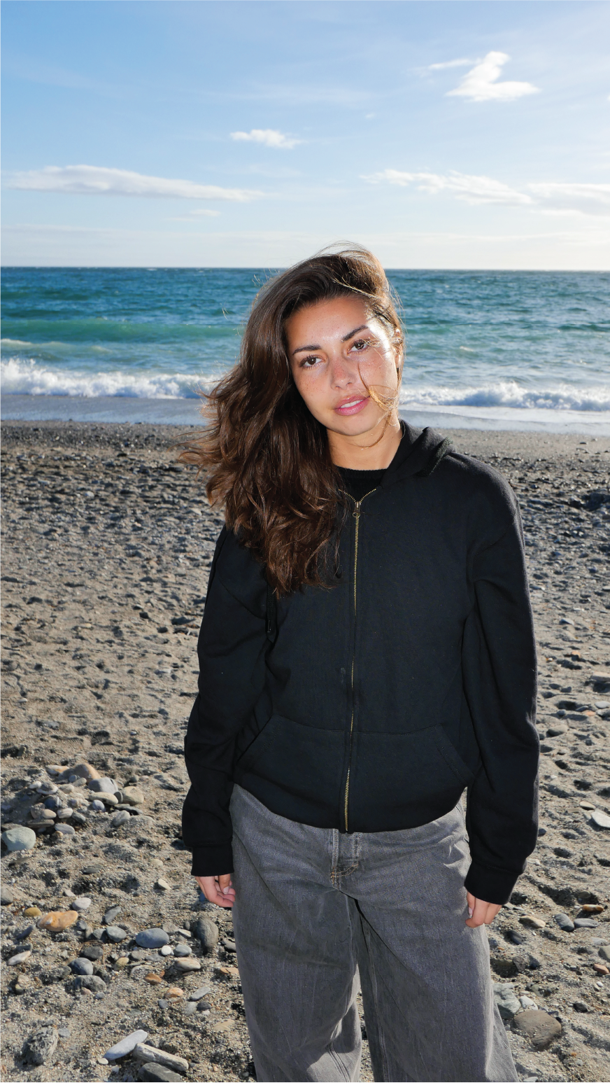 En sammensmeltning af vores komfortable hoodie og en velfungerende lynlås. Den mindste størrelse findes uden snor i hætten.